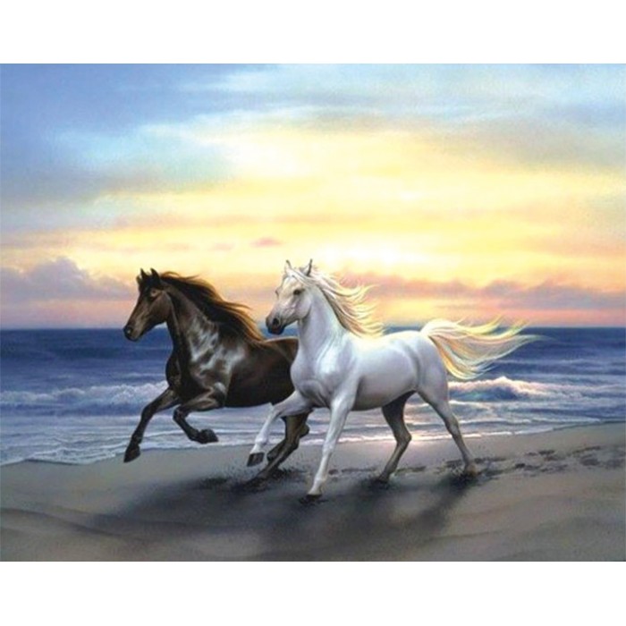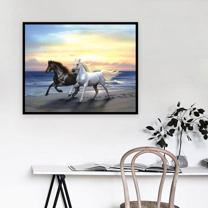 Animal Black Horse And White Horse Complement Each Other Diamond Art