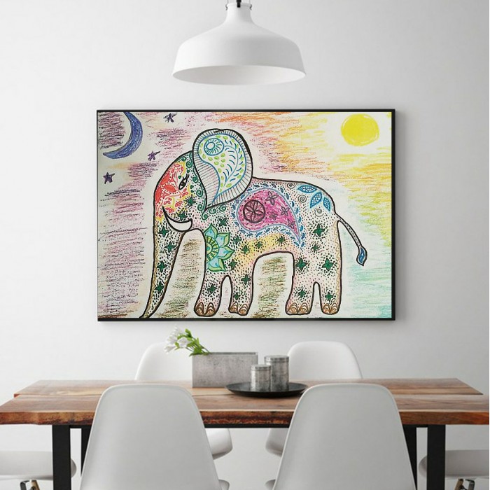 Animal Colorful Elephants In The Eyes Of Children Diamond Art