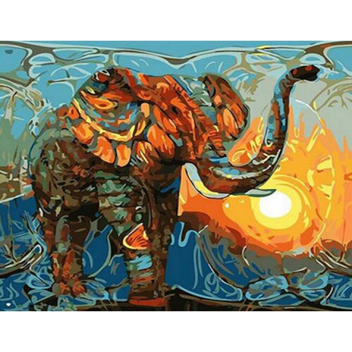 Animal Elephant Under The Flaming Sun Diamond Art