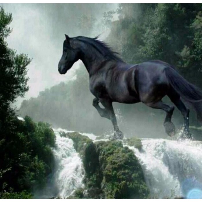 Animals Black Horse Running Fast Landscape