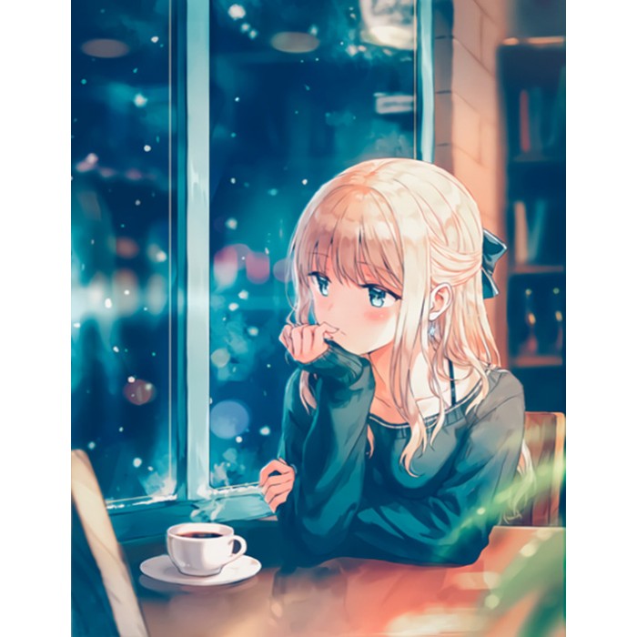 Fantasy Lonely Little Girl In The Coffee Shop Diamond Art