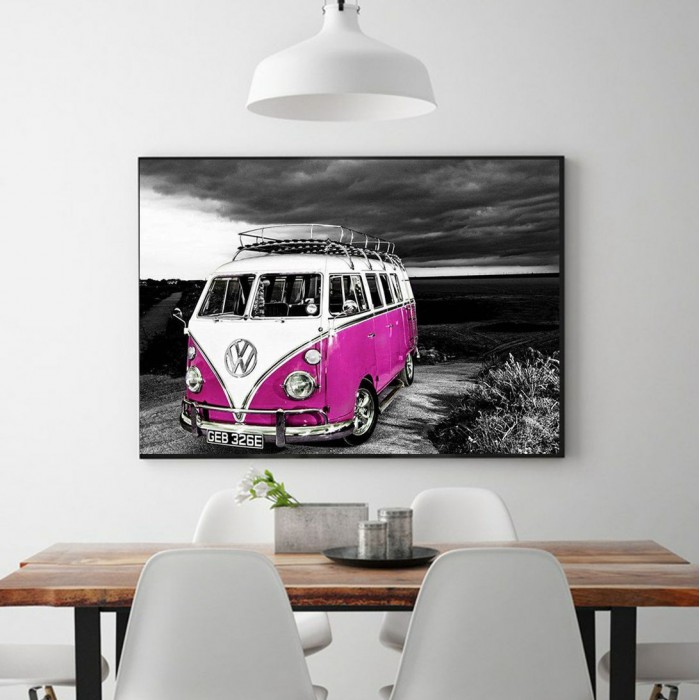 Scenes A Pink Bus Under A Gray Sky Diamond Art
