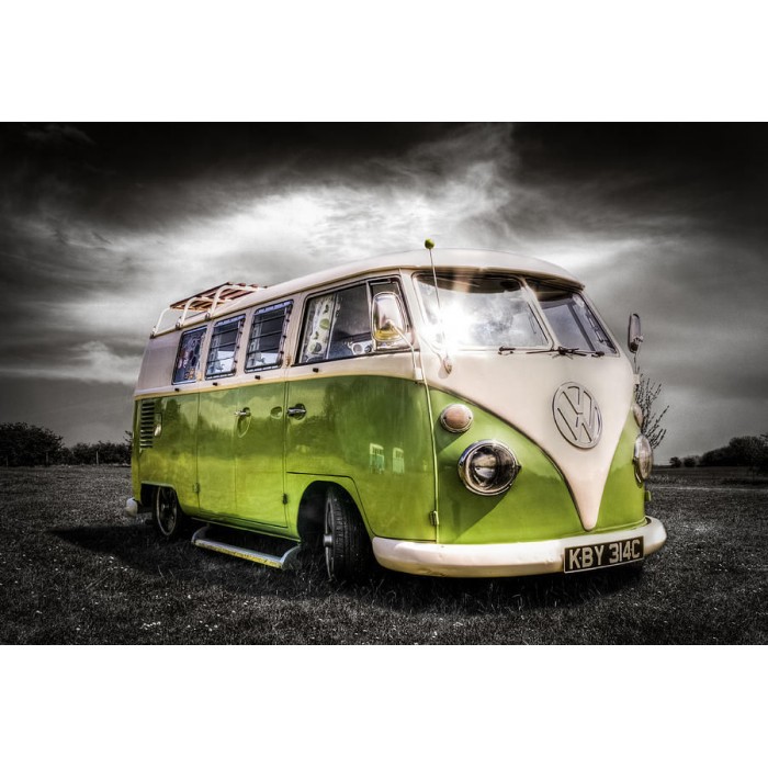 Scenes Green Bus In A Cloudy Day Diamond Art