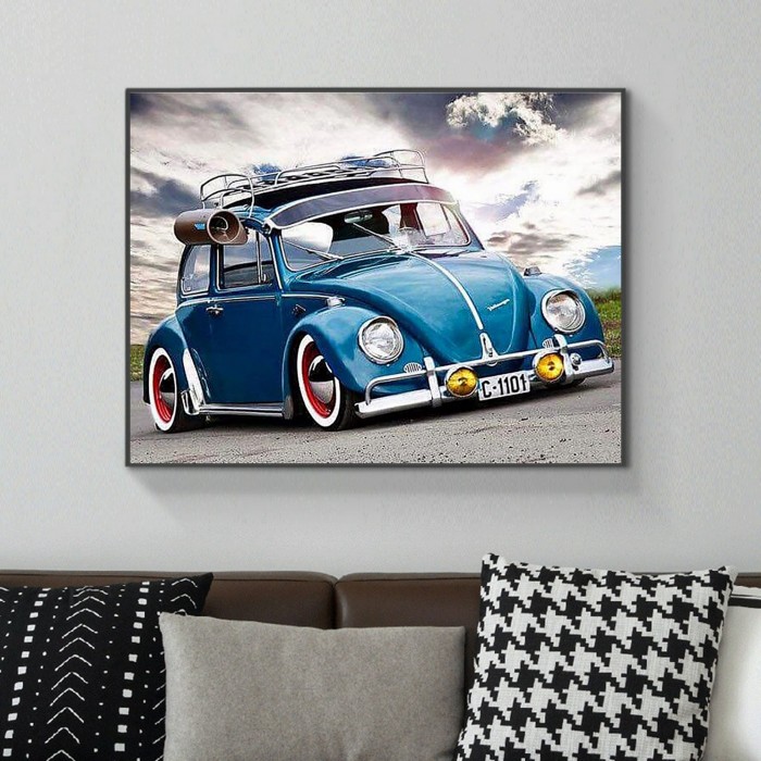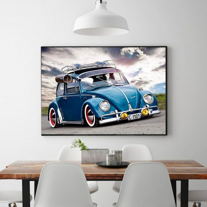 Scenes Little Blue Car On The Road Diamond Art