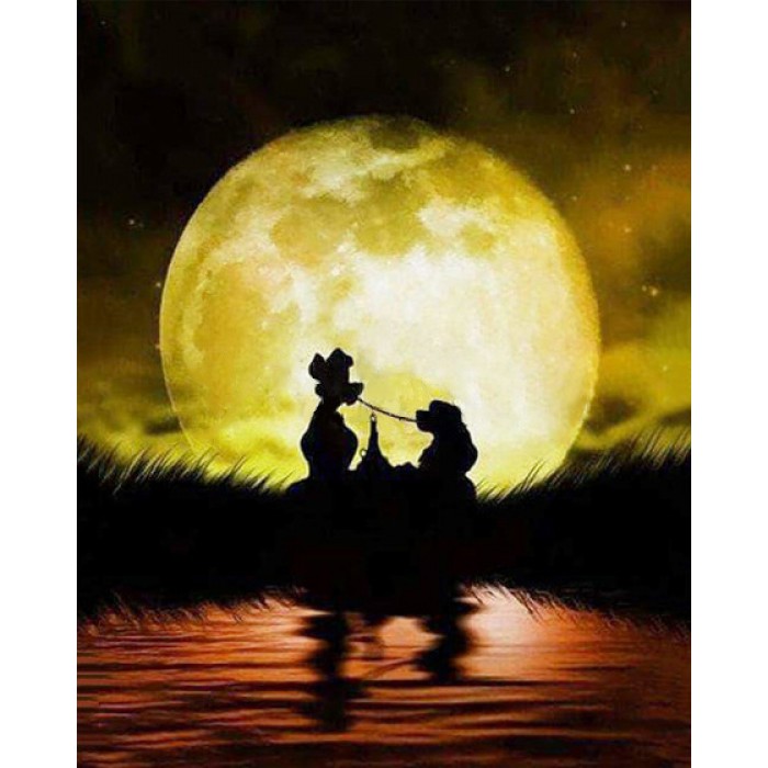 Variety A Pair Of Puppies In The Moonlight Diamond Art