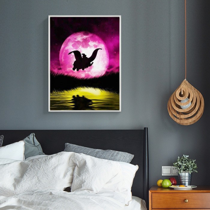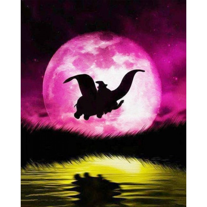 Variety Flying Elephants Under The Pink Moon Diamond Art